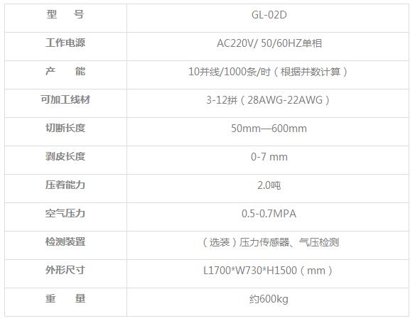 三:全自動單頭打端沾錫機的技術參數